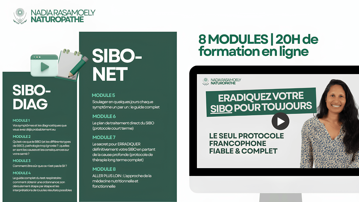 8 MODULES et près de 20H de formation en e-learning pour éradiquer votre SIBO